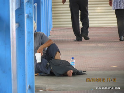 Dia datang dari Kuala Lumpur dan duduk di atas jejantas di Pelangi Damansara ini, menagih simpati orang ramai lalu-lalang.